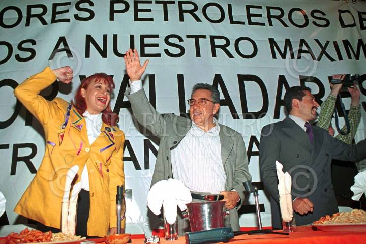 Maru Memije y Hector Valladares Torres candidatos a la dirigencia de la sección XXXIV del sindicato de Pemex se reunieron ante un centenar de trabajadores disidentes. FOTO: Eunice Adorno/CUARTOSCURO.COM