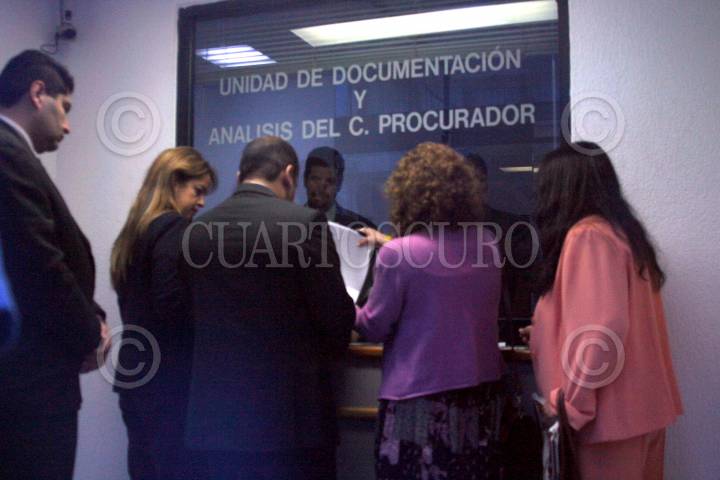 MEXICO, D.F. 25ABRIL2005.- Los diputados locales del PRD, Lorena Villavicencio, Julio Cesar Moreno, Maricela Contreras y Ma. Araceli Vazquez, acudieron a la PGR y levantaron una denuncia en conttra del subprocurador Javier Vega Memije, con el argumento de que proporciono información confidencial a los legisladores quienes pagaron la caución que el ministerio público Cortés Barreto fijo en contra de del jefe de Gobierno capitalino, Andrés Manuel López Obrador. FOTO: Sandra Perdomo/CUARTOSCURO.COM