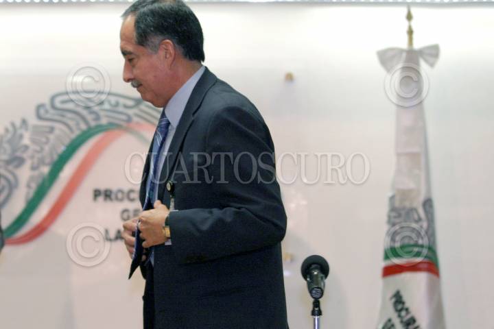 MEXICO, D.F. 15ABRIL2005.- Carlos Vega Memije, subprocurador de Delitos Federales de la Procuraduría General de la República, ofreció una conferencia de prensa a los medios de comunicación en el edificio de dicha institución. FOTO: Nelly Salas/CUARTOSCURO.COM