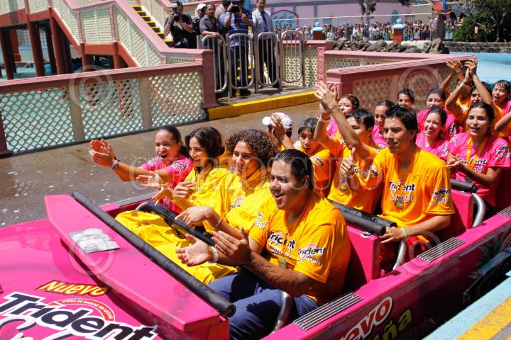 MÉXICO, D.F., 23AGOSTO2009.- La actriz Martha Higareda y Memo Ochoa, se subieron a los juegos mecánicos de una parque de diversiones ubicado al sur de la capital, como parte de una campaña publicitaria de una marca de chicles, ahí se divirtieron con algunos jóvenes que ganaron un concurso. FOTO: MOISÉS PABLO/CUARTOSCURO.COM