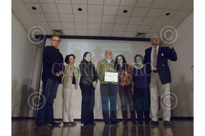 MÉXICO, D.F., 31AGOSTO2012.- Miguel Ángel Tenorio, director de Radio Educación, recibió el Registro Memoria del Mundo de México que reconoce la Organización de las Naciones Unidas para la Educación, la Ciencia y la Cultura (UNESCO), por la serie radiofónica De puntitas, que condujo Emilio Ebergenyi. FOTO: MOISÉS PABLO /CUARTOSCURO.COM