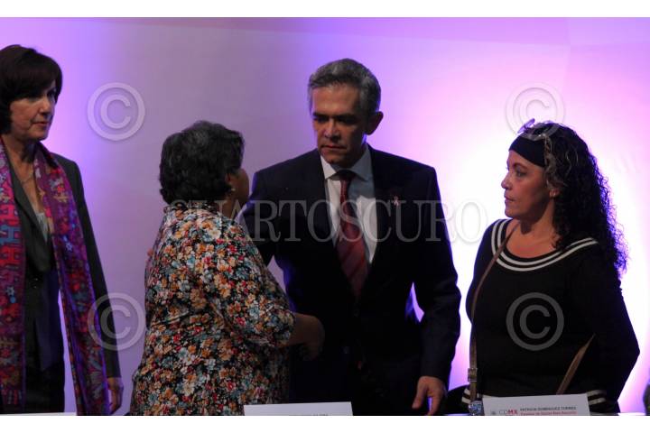 MÉXICO, D.F., 29OCTUBRE2015.- Leticia Morales Bravo, Hilda Barragán, Carmen Rivas Nájera, Patricia Domínguez Torres, madres de las víctimas del 20 de junio del 2008 en el fallido operativo en la discoteca New's Divine, en donde murieron 12 personas, estuvieron presentes en la Instalación del Consejo Ciudadano para el Memorial "News Divine, Nunca Más", presidido por Miguel Ángel Mancera, Jefe de Gobierno del Distrito Federal. En la image, Perla Gómez, presidenta de la Comisión de Derechos a Humanos del Distrito Federal, Patricia Mercado, Secretaria de Gobierno del D.F., dialogan con Miguel Ángel Mancera, jefe de Gobierno. FOTO: ADOLFO VLADIMIR /CUARTOSCURO.COM