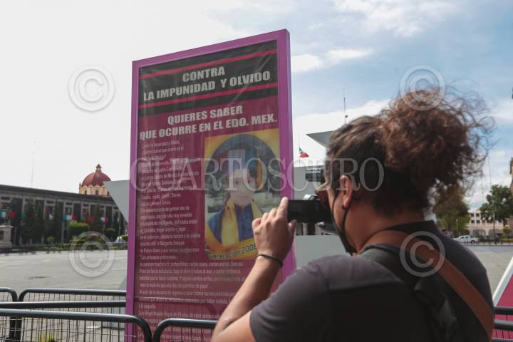 CIUDAD DE MÉXICO, 16MARZO2024.- Familiares de desparecidos realizaron una protesta pacífica luego de que ayer militares que custodian Palacio Nacional retiraran los cuatro memoriales que familias de desaparecidos habían instalado en una jardinera frente al recinto presidencial. FOTO: MARIO JASSO/CUARTOSCURO.COM