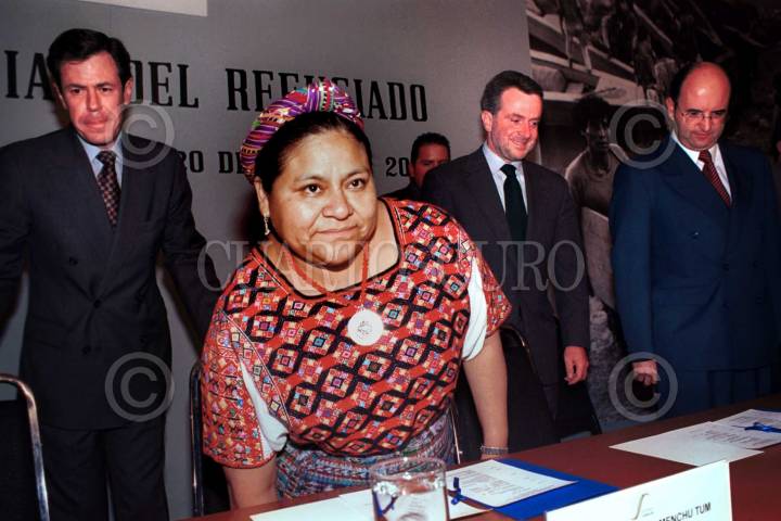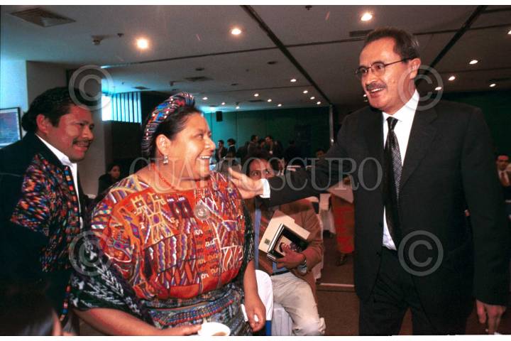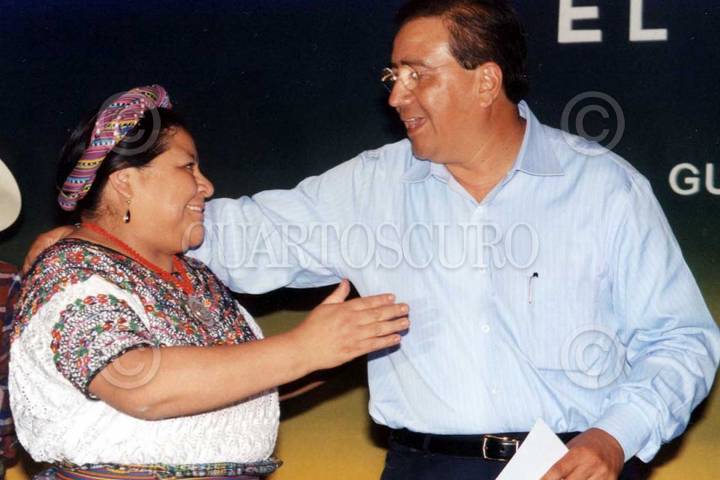 Rigoberta Menchu, Premio Nobel de la Paz y Pablo Salazar Mendiguchia, gobernador de Chiapas, al termino del Foro por la Paz realizado en esta entidad del sureste mexicano. FOTO: Oscar León/CUARTOSCURO.COM