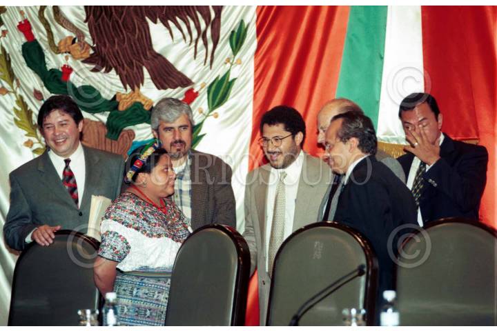 Los diputados Jaime Martínez Veloz, José Narro y Marti Batres ex integrantes e integrantes de la COCOPA ( Comisión de Concordia y Pacificación) así como la Premio Nobel de la Paz, Rigobera Menchú anunciarón la propuesta de modificación a la Ley Indigena aprobada en el periodo pasado de sesiones de la Cámara de Diputados. FOTO: Oswaldo Ramírez/CUARTOSCURO.COM