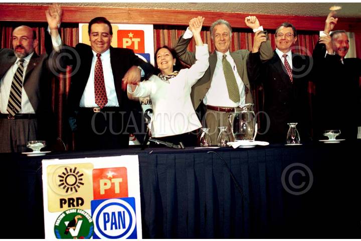 En un conocido hotel capitalino se reunieron dirigetes de partidos politicos que conforman la Alinaza por Chiapas y desde luego el candidato Pablo Salazar Mendiguchía. Manuel Camacho, Amalia García, Luis Felipe Bravo asi como los gobernadores de Baja California Norte y del D.F., Rosario Robles. FOTO: Victoria Valtierra/CUARTOSCURO.COM