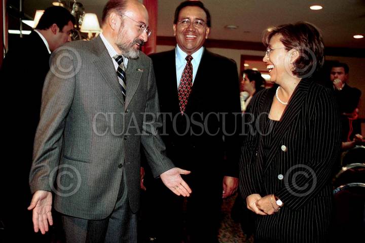 Luis Felipe Bravo, Pablo Salazar y Rosario Robles conversan un poco antes del iunicio de la reunion de los dirigentes de partidos politicos que conforman la Alianza por Chiapas. FOTO: Victoria Valtierra/CUARTOSCURO.COM