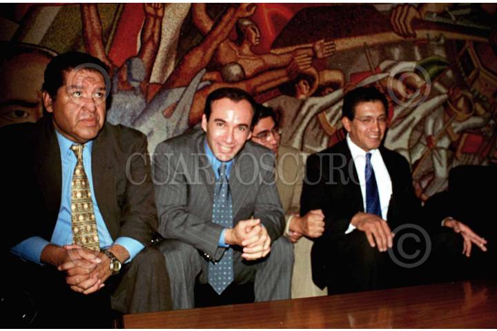 Fausto Félix Mendivil (al centro) dio a conocer, en conferencia de prensa en las oficinas del PRI, la posición de la Corriente Crítica y de Democracia 2000 en torno al mandato ejercido por el presidente Ernesto Zedillo. FOTO: Fernanda Sánchez/CUARTOSCURO