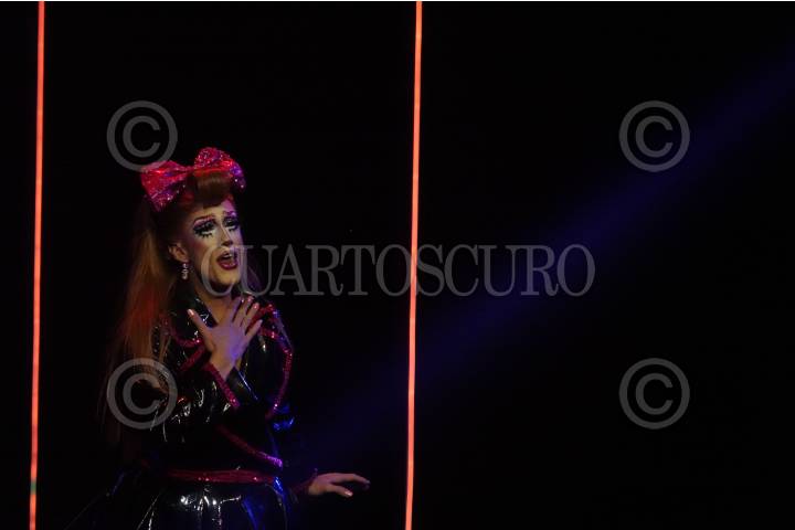La drag queen "Letal" durante la alfombra roja de la obra MentiDrags en el Teatro Aldama.