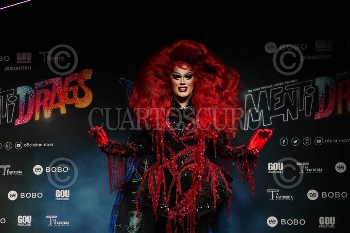 La drag queen Deseos Fab durante la alfombra roja de la obra MentiDrags en el Teatro Aldama.