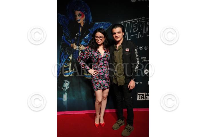 La actriz Violeta Isfel y su hijo Omar Isfel durante la alfombra roja de la obra MentiDrags en el Teatro Aldama.