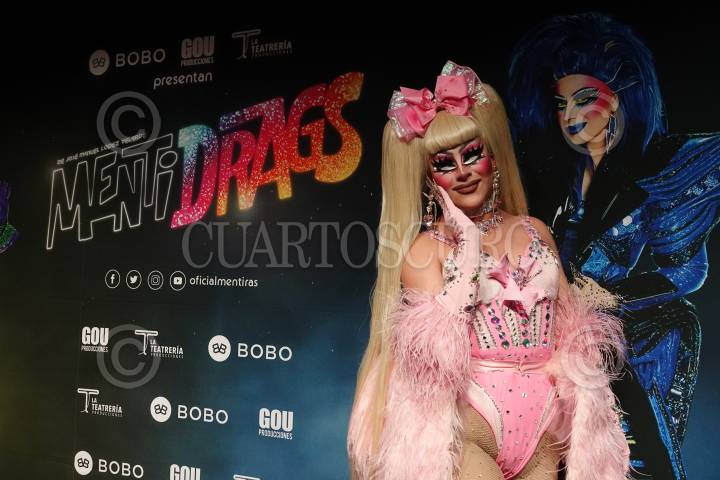 La drag queen Pam Sashaa durante la alfombra roja de la obra MentiDrags en el Teatro Aldama.