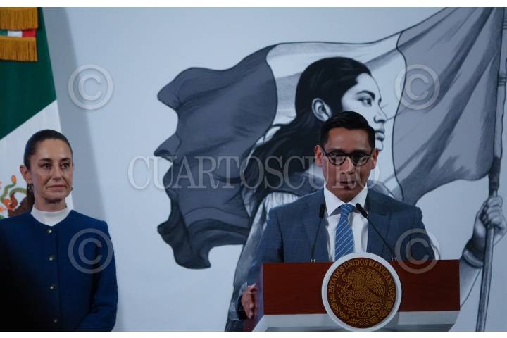 CIUDAD DE MÉXICO, 15ENERO2025.- Miguel Ángel Elorza, coordinador de Infodemia, durante su presentación de la sección “Detector de Mentiras” en la conferencia “Mañanera del Pueblo”. FOTO: GALO CAÑAS/CUARTOSCURO.COM