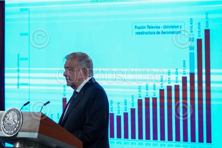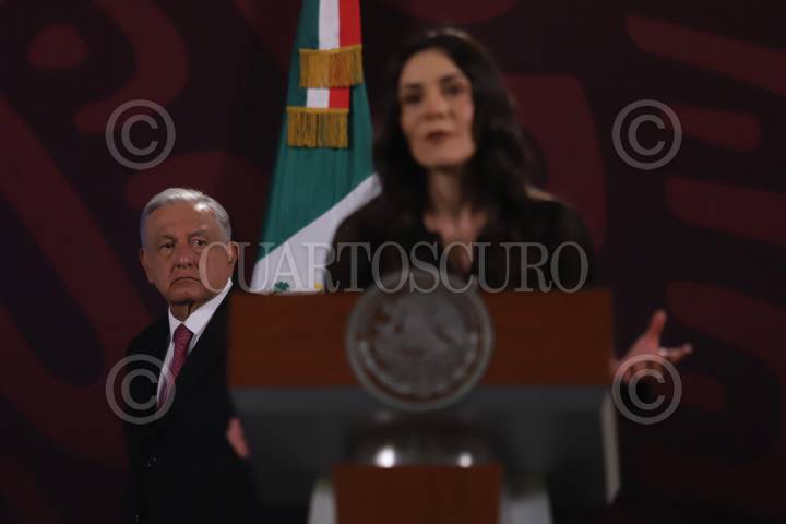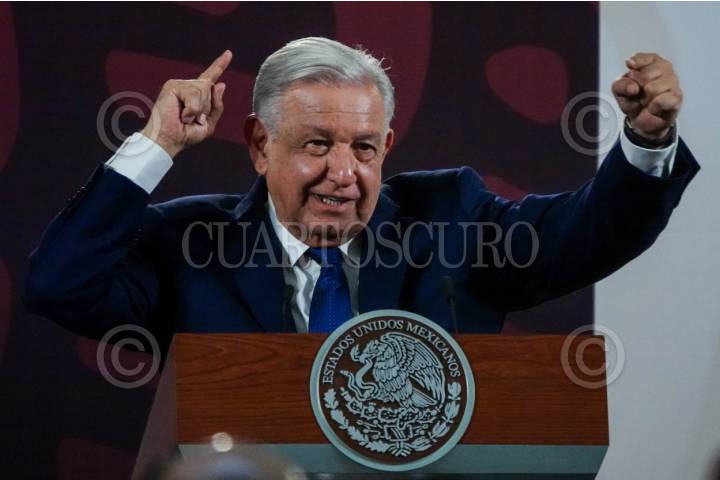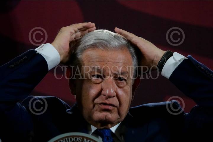 CIUDAD DE MÉXICO, 08MAYO2024.- Andrés Manuel López Obrador, presidente de México, encabezó la conferencia matutina desde Palacio Nacional en que se presentó la sección “¿Quién es quién en las mentiras de la semana?”, así como responder a preguntas de los medios de comunicación. FOTO: GALO CAÑAS/CUARTOSCURO.COM