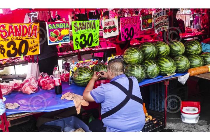CIUDAD DE MÉXICO. 05SEPTIEMBRE2025.- Venta de sandías en el tianguis de la alcaldía Coyoacán. FOTO: VICTORIA VALTIERRA/CUARTOSCURO.COM