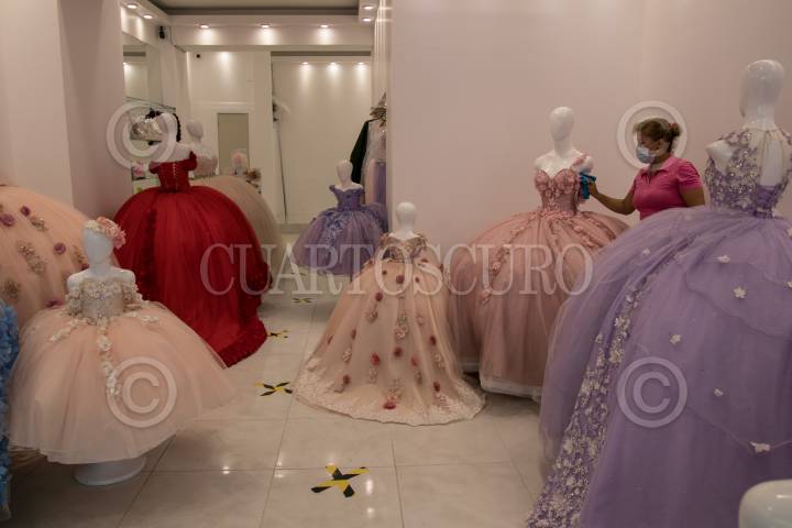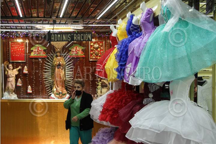 Los negocios de vestidos de boda y quince años, de la zona de la Lagunilla, continúan sufriendo las repercusiones del cierre de tres meses derivado de la pandemia por Covid-19. Con nulas ventas y la necesidad de pagar servicios algunos negocios han ten