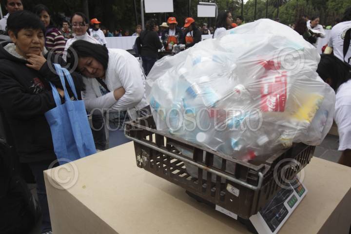 MÉXICO, D.F., 12OCTUBRE2014.- Decenas de personas acudieron al mercado del trueque que fue instalado en la Plaza de la República en el Monumento a la Revolución donde cambiaron desechos reciclables que generaron en su hogar por algún producto que se les ofrece como frutas y verduras o plantas. FOTO: ENRIQUE ORDÓÑEZ /CUARTOSCURO.COM