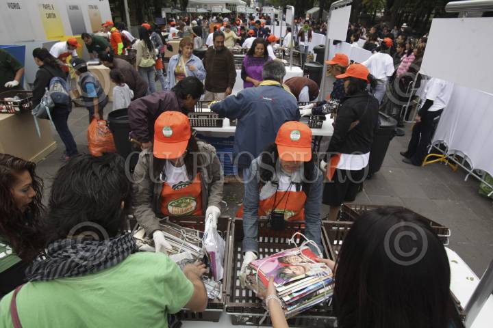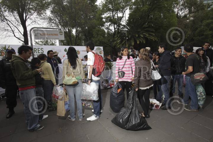 MÉXICO, D.F., 04MARZO2012.-Cambian desperdicios reciclables por verdura fresca y otros productos sustentables en la entrada al Bosque de Chapultepec, donde se lleva a cabo el Mercado del Trueque, organizado por la Secretaría del Medio Ambiente del DF FOTO: JUAN PABLO ZAMORA /CUARTOSCURO.COM