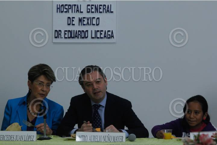 CIUDAD DE MÉXICO, 02FEBRERO2016.- Mercedes Juan López, Secretaria de Salud junto a Aurelio Nuño, Secretario de Educación Pública durante la reunión desayuno que se realizó en el Hospital General donde convivieron con niños y adultos para comer los tradicionales tamales del dia de la Candelaria. FOTO: ENRIQUE ORDÓÑEZ /CUARTOSCURO.COM