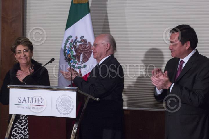CIUDAD DE MÉXICO, 08FERERO2016.- Jose Narro Robles Junto a Mercedes Juan y Miguel Angel Osorio Chong, Secretario de Gobernación durante el mensaje que realizaron para dar a conocer la salida de la doctora Mercedes Juan de la Secretaria de Salud y el nombramiento de Jóse Narro como nuevo Secretario luego que por la tarde el Presidente de la República Enrique Peña Nieto anunciara diversos cambios en su gabinete. FOTO: ENRIQUE ORDÓÑEZ /CUARTOSCURO.COM
