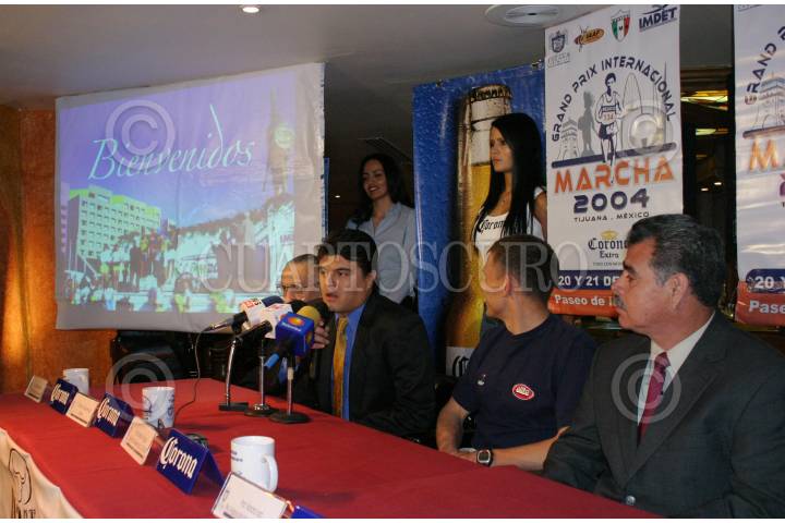 México, D. F. 26 Febrero 2004.- Carlos Mercenario y el marchista Robert Korseniowks, anunciaron en conferencia de prensa el que el Gran Prix Internacional Marcha, se llevará a cabo en Tijuana, Baja California el 20 y 21 de marzo. FOTO: Nelly Salas/CUARTOSCURO.COM