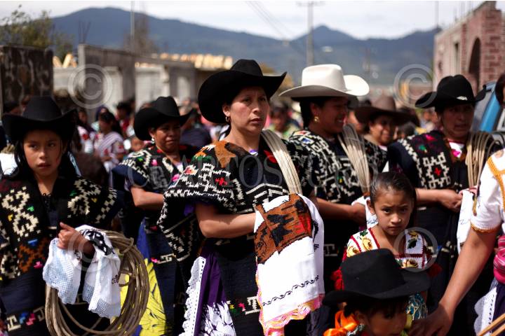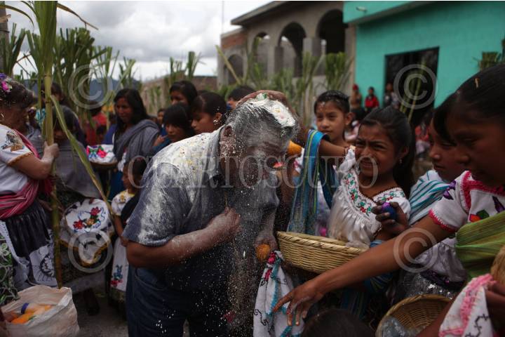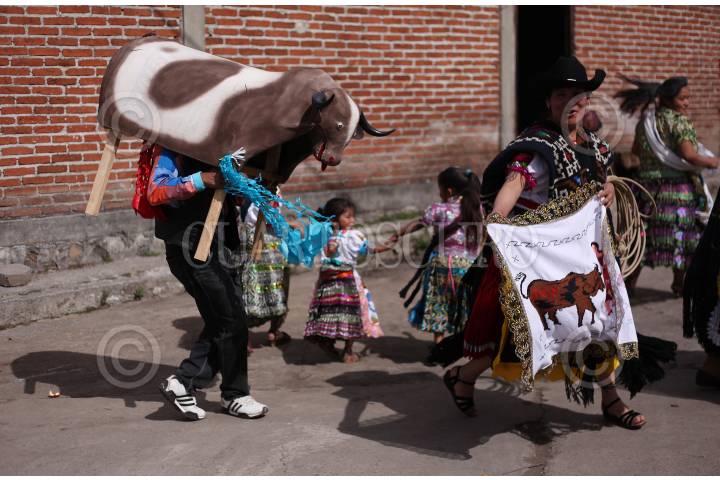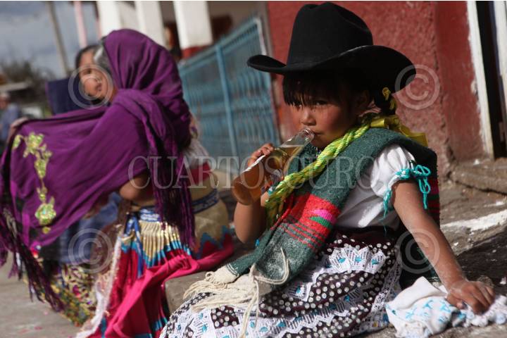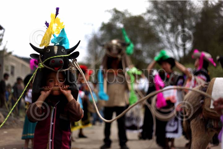 NAHUATZEN, MICHOACÁN, 18FEBRERO2015.-El día de carnaval en Turícuaro se realiza una fiesta en honor al agua; cada año un manantial o familia diferente organizan, según sea el caso, se invita a participar a la faena a todos aquellos que se abastecen de allí como los ganaderos, algunos barrios o todo el pueblo. El sentido de la fiesta es mostrarle al agua lo que se le aprecia y valora, además de que las faenas buscan dejar asentado el espíritu de cooperación y participación de la gente. La fiesta corre a cargo del “colector” o carguero del niño dios, aunque la gente también coopera con adornos, comida u otros detalles. Más tarde las mujeres y niños con comida, refrescos, cervezas, cigarros y vino. Los hombres reparten las bebidas y las mujeres la comida. Primero comen los hombres, después los niños y luego las mujeres. Es un día de fiesta y convivencia: todos bailan y juegan. El cielo truena con los cohetes que se lanzan desde el epicentro de la fiesta. Las mujeres portan bellos mandiles y se colocan moños y banderas de todos colores en el cabello. Enmedio del relajo, se avientan confeti. Los niños se pintan la cara y se rompen “cascarones” en la cabeza a la par que se avientan harina. Al arribar a la plaza se hace una gran fiesta: se simula un acto en que un ganadero se roba una vaca y entonces la gente corre tras él hasta alcanzarlo; asimismo, el torito de carnaval baila y todos los niños y jóvenes hacen relajo con él y tratan de torearlo FOTO: ALAN ORTEGA /CUARTOSCURO.COM