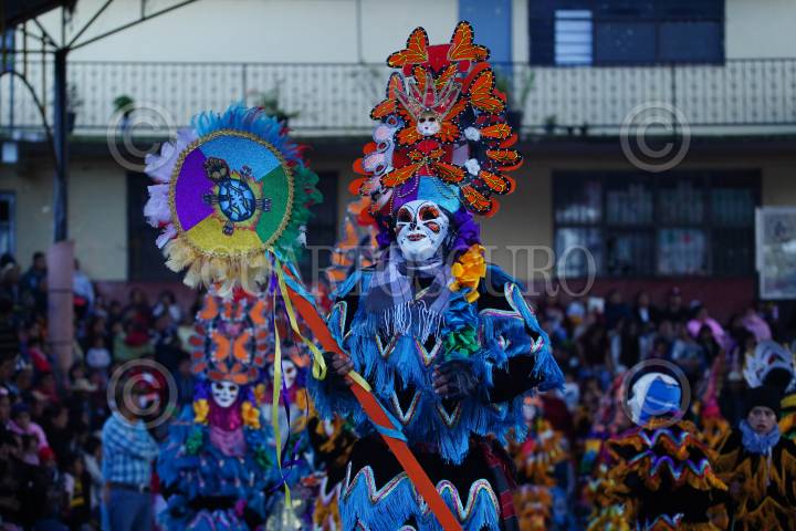 NAHUATZEN, MICHOACÁN, 28DICIEMBRE2023.- La comunidad indígena de Comachuen que se encuentra en el centro del estado, aquí se celebra el sincretismo entre el canon católico y la religiosidad indígena, se caracteriza por ser un espacio exclusivo de mujeres y hombres jóvenes, a quienes les corresponden los cantos, danzas, las letanías y la representación de la lucha entre lo divino y lo terrenal. Los personajes principales son: chali o demonio, pastores, rancheros, luzbeles y ermitaños, todos ellos desde el día 24 de diciembre por la noche, bailan por las calles y barrios de la comunidad. FOTO:JUAN JOSÉ ESTRADA SERAFÍN /CUARTOSCURO.COM
