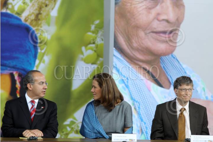 MÉXICO, D.F., 14JUNIO2010.- Felipe Calderón Hinojosa, Presidente de México, Margarita Zavala, primera dama mexicana y Bill Gates, presidente de la fundación Bill y Melinda Gates, encabezaron el lanzamiento de la iniciativa Salud Mesoamericana 2015, en el Museo de Antropología. FOTO: MOISÉS PABLO/CUARTOSCURO.COM
