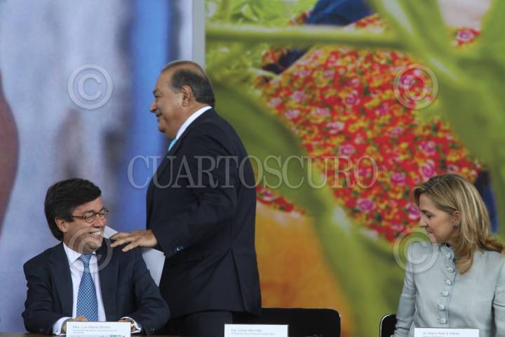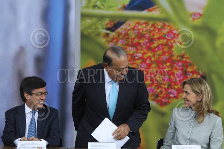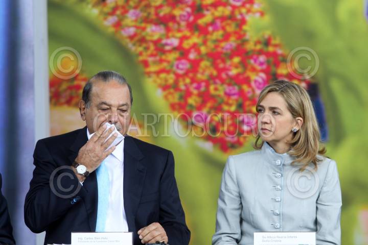 MÉXICO, D.F., 14JUNIO2010.- El empresario Carlos Slim Helú y la Infanta Cristina, durante el lanzamiento de la iniciativa Salud Mesoamericana 2015, en el Museo de Antropología. FOTO: MOISÉS PABLO/CUARTOSCURO.COM