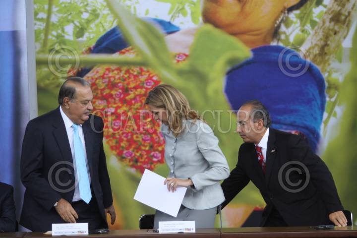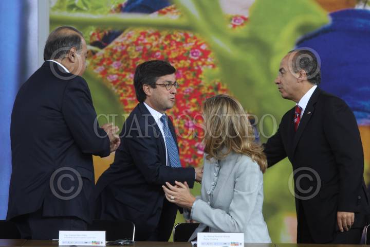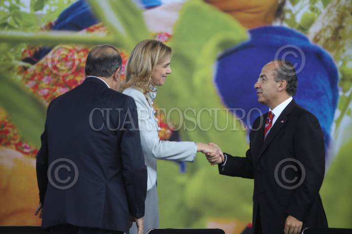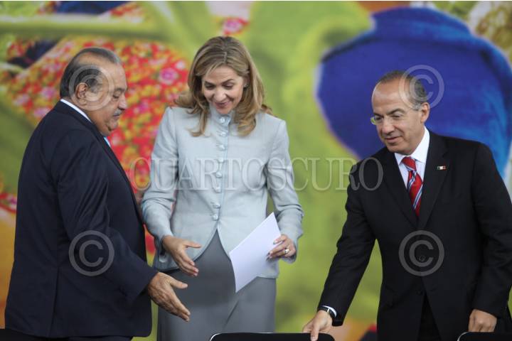MÉXICO, D.F., 14JUNIO2010.- Carlos Slim Helú, fundador del grupo Carso, la Infanta Cristina y Felipe Calderón Hinojosa, Presidente de México, encabezaron el lanzamiento de la iniciativa Salud Mesoamericana 2015, en el Museo de Antropología. FOTO: MOISÉS PABLO/CUARTOSCURO.COM