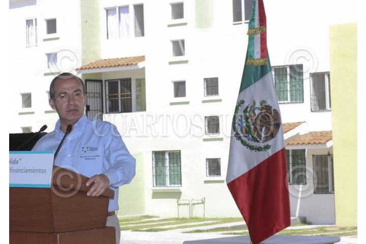MUNICIPIO DE MORELIA, MICHOACÁN, 03MARZO2012.- Felipe Calderón Hinojosa, Presidente de México, entregó el financiamiento 6 millones de vivienda en la capital moreliana. FOTO: ALFREDO GUERRERO /CUARTOSCURO.COM