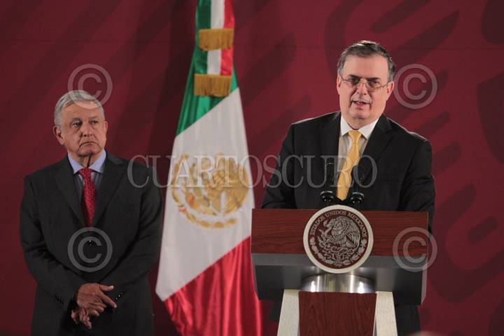 CIUDAD DE MÉXICO, 12NOVIEMBRE2019.- Marcelo Ebrard Casaubon, secretario de Relaciones Exteriores, durante la conferencia matutina diaria para responder preguntas a los medios de comunicación en el Palacio Nacional. FOTO: ANDREA MURCIA /CUARTOSCURO.COM