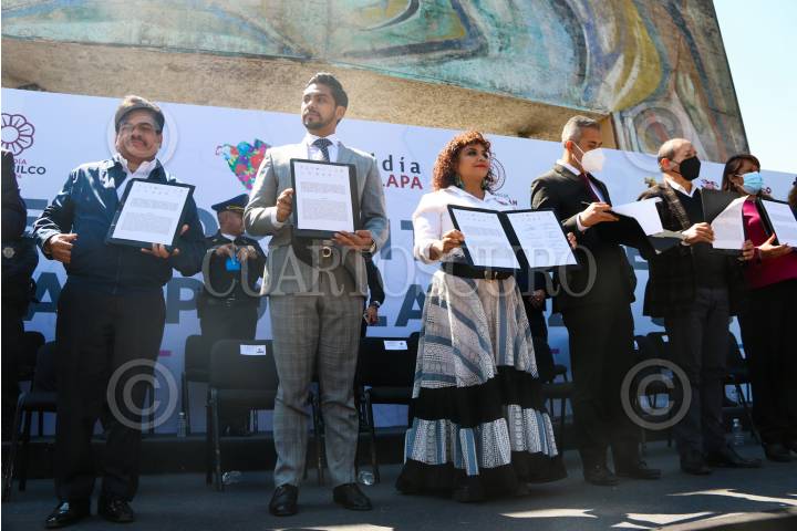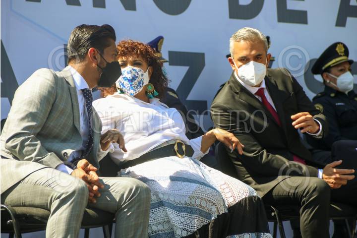 Enrique Alfaro Gobernador de Jalisco y Samuel García Gobernador electo de Nuevo León, se despiden al finalizar la conferencia de prensa que ofrecieron en el Museo Cabañas de esta ciudad.