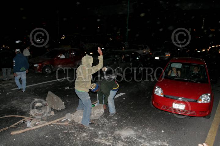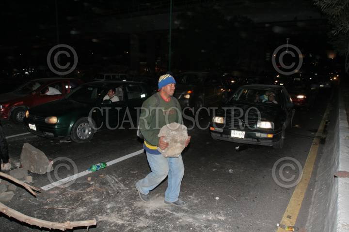 ECATEPEC, ESTADO DE MEXICO, 13OCTUBRE2010.- Un grupo de transportistas y vecinos de la zona, bloquearon por espacio de una hora la avenida Central a la altura de la estacion del metro Rio de los Remedio en protesta por la construccion del Mexibus. FOTO: ENRIQUE ORDOÑEZ/CUARTOSCURO.COM