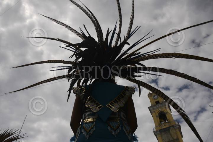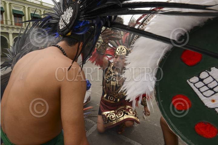 XALAPA, VERACRUZ, 09MARZO14.- Con una danza para festejar el cambio de ciclo o año nuevo mexica, el grupo Ome Acatl, realizó un ritual en la plaza Lerdo con el objetivo de recibir abundancia a través de trabajo cuando la tierra sea fecundada por el sol el día 12 de este mes. FOTO: RUBEN ESPINOSA /CUARTOSCURO.COM