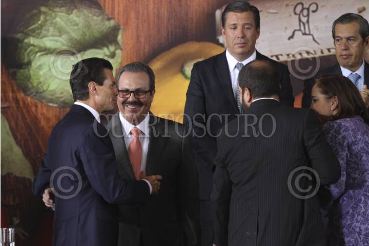 MÉXICO, D.F., 04AGOSTO2015.- El presidente Enrique Peña Nieto lanza la Política de Fomento a la Gastronomía Nacional, que pretende potenciar la oferta gastronómica del país para crear desarrollo productivo nacional. En la imagen Salvador Jara Guerrero gobernador del estado de Michoacan y Rolando Zapata Bello gobernador del estado de Yucatan. FOTO: ISABEL MATEOS /CUARTOSCURO.COM