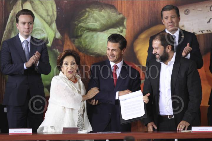 MÉXICO, D.F., 04AGOSTO2015.- El presidente Enrique Peña Nieto lanza la Política de Fomento a la Gastronomía Nacional, que pretende potenciar la oferta gastronómica del país para crear desarrollo productivo nacional. Asistieron al evento los secretarios de Hacienda; Luis Videgaray, Agricultura; Enrique Martínez y Turismo, Claudia Ruiz Massieu. Pretende impulsar la cocina mexicana como representante del patrimonio cultural intangible, nombrado por la UNESCO. FOTO: ISABEL MATEOS /CUARTOSCURO.COM