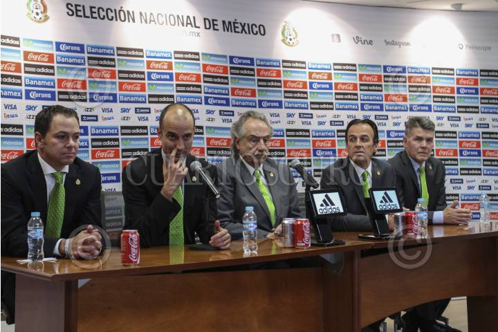 MÉXICO, D.F., 17AGOSTO2015.- Desio Di Maria, presento en conferencia de prensa al nuevo comité deportivo de la selección mexicana de fútbol. Como director de selecciones nacionales a Guillermo Cantú, Fernando Cerrilla, es el nuevo director operativo, Santiago Baños es ahora el director deportivo y Héctor González ocupa el puesto de director de arbitraje. No mencionaron al nuevo director técnico y decidieron no responder ninguna pregunta al respecto. FOTO: ISABEL MATEOS /CUARTOSCURO.COM