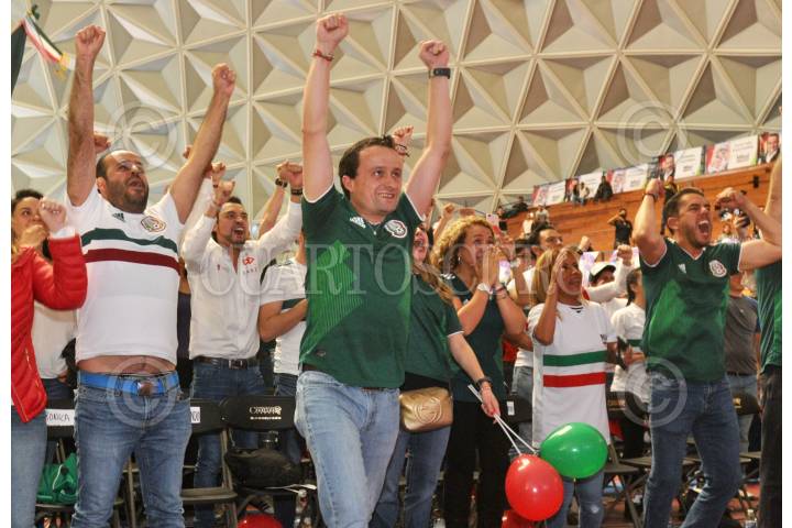 CIUDAD DE MÉXICO, 17JUNIO2018.- Mikel Arriola, candidato del PRI a la Jefatura de Gobierno, se reunió con simpatizantes en el Deportivo Plan Sexenal para observar el partido México vs Alemania de la Copa del Mundo Rusia 2018, en el cual los tricolores se impusieron 1-0. FOTO: CUARTOSCURO.COM