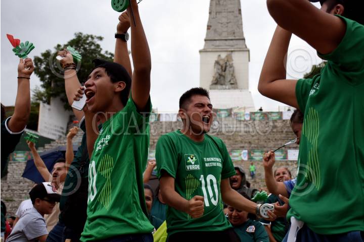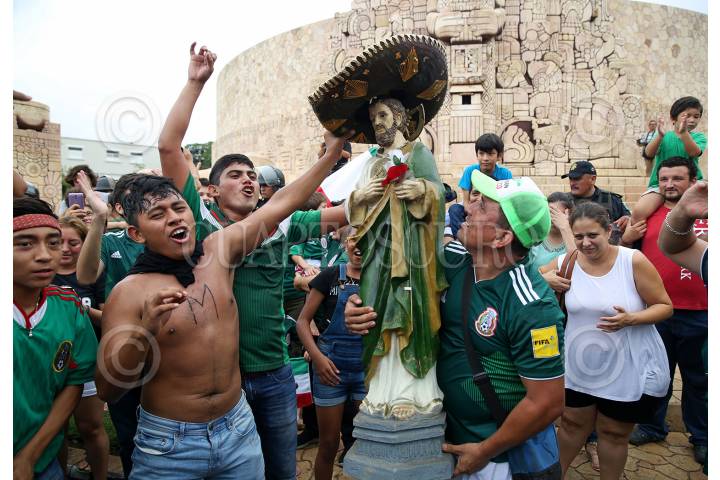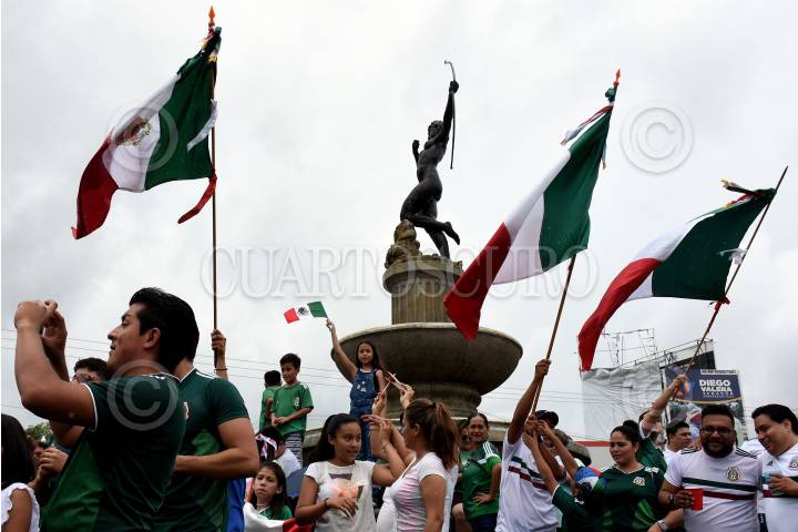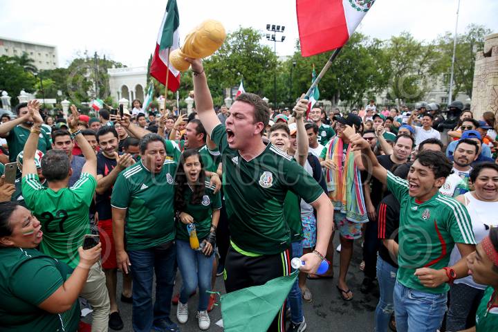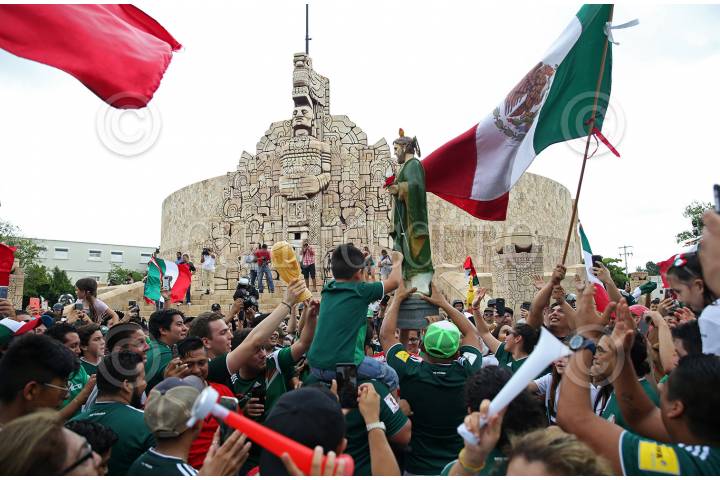 MÉRIDA, YUCATÁN, 17JUNIO2018.- Cientos de yucatecos acudieron al Monumento a la Patria para festejar el triunfo de la selección mexicana ante Alemania 1-0 en su primer partido del Mundial de Rusia 2018. FOTO: FRANCISCO BALDERAS /CUARTOSCURO.COM