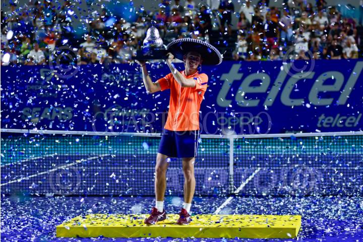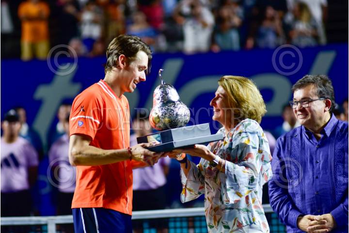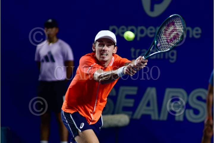 ACAPULCO, GUERRERO, 03MARZO2024.- El tenista australiano Alex de Minaur se corono campeón por segunda vez consecutiva del Abierto Mexicano de Tenis Acapulco 2024, al vencer al noruego Casper Ruud, por dos sets a cero, en un emocionante partido. El australiano declaró en la premiación que Acapulco se ha vuelto su segunda ciudad y agradeció el apoyo de la afición. FOTO: CARLOS ALBERTO CARBAJAL/CUARTOSCURO.COM