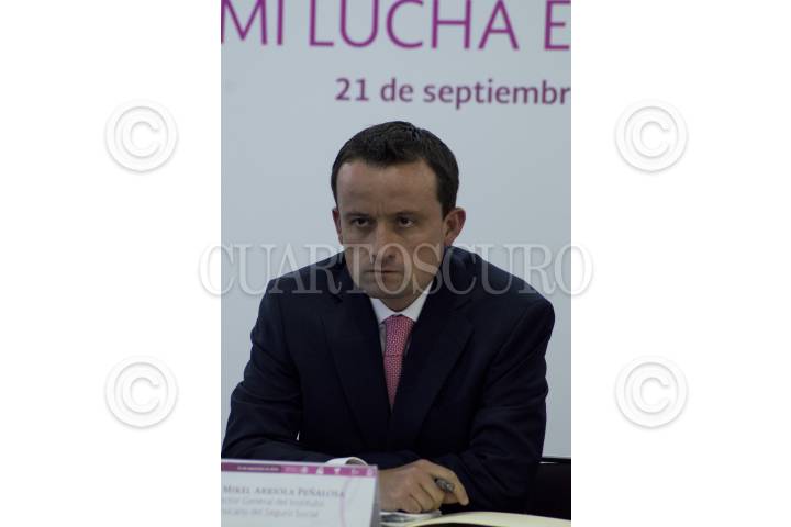 CIUDAD DE MÉXICO, 21SEPTIEMBRE2016.- Mikel Arriola, director general del Instituto Mexicano del Seguro Social (IMSS), acudió a la sede del instituto, ubicada sobre Paseo de la Reforma, para presentar la nueva iniciativa denominada “Mi Lucha es Rosa”, campaña que busca la prevención y la atención temprana antes los casos de cáncer de mamá. El titular del IMSS invitó a las derechohabientes a acudir a la campaña de prevención el próximo mes de octubre, así como a realizarse autoexploraciones y mastografías. FOTO: GALO CAÑAS /CUARTOSCURO.COM