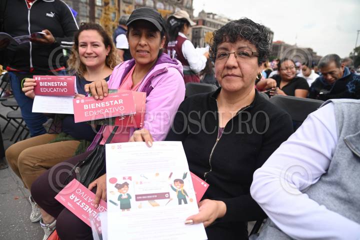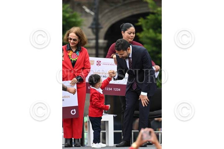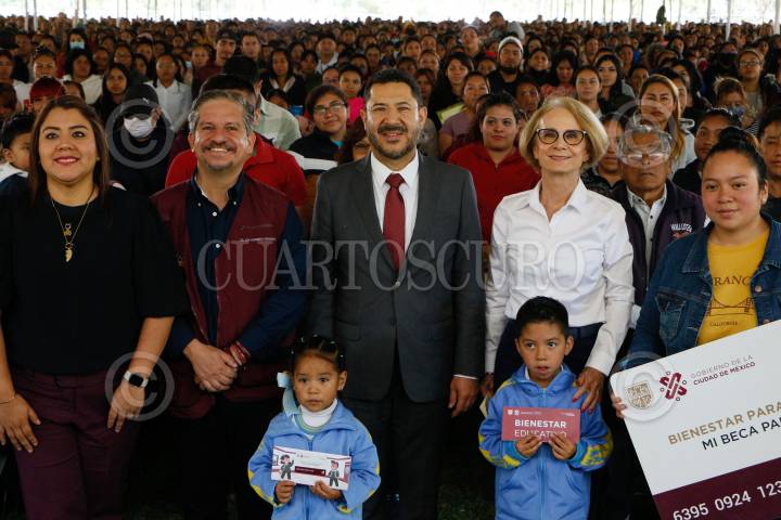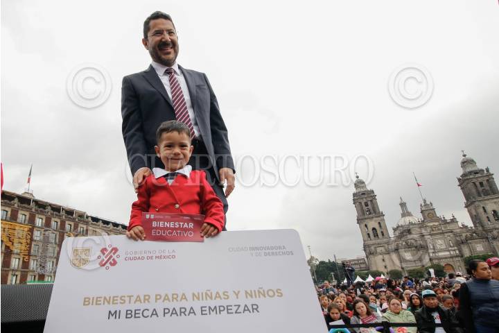 CIUDAD DE MÉXICO, 12SEPTIEMBRE2024.- El Jefe de Gobierno, Martí Batres Guadarrama, encabezó las primeras dos entregas de tarjetas del Programa “Bienestar para Niñas y Niños, Mi Beca para Empezar” en el Zócalo de la Ciudad de México, a estudiantes de nuevo ingreso inscritos en planteles públicos de nivel básico para el ciclo escolar 2024-2025. En total, se dará cobertura a más de 100 mil nuevas y nuevos beneficiarios de preescolar, primaria y secundaria. La primera fase, que contempla la entrega a 30 mil 185 alumnas y alumnos que concluyeron su registro en el programa, comenzó ayer miércoles con la incorporación de 9 mil 948 estudiantes de las alcaldías Azcapotzalco, Miguel Hidalgo y Gustavo A. Madero, y continuó este jueves con 9 mil 894 tarjetas para alumnos de Álvaro Obregón, Benito Juárez, Coyoacán, Cuajimalpa, Cuauhtémoc, La Magdalena Contreras y Venustiano Carranza. FOTO: GOBIERNO DE LA CIUDAD DE MÉXICO/CUARTOSCURO.COM