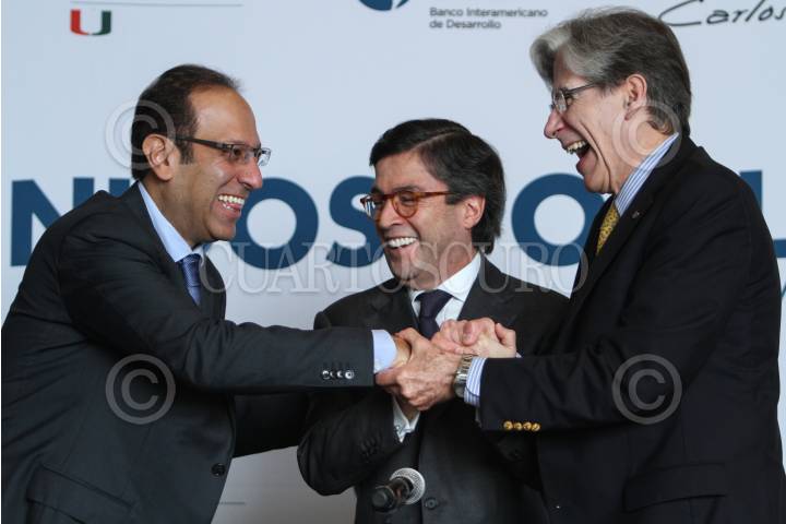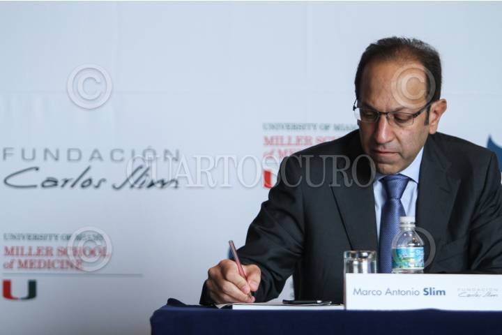 MÉXICO, D.F., 29OCTUBRE2015.- La Universidad de Miami, Fundación Slim y el Banco Interamericano de Desarrollo unen esfuerzos y realizan una firma de convenio para ofrecer capacitación en linea a profesionales de la salud en Mesoamérica. Marco Antonio Slim, Luis Alberto Moreno y Julio Frenk presidieron la conferencia. FOTO: ISABEL MATEOS /CUARTOSCURO.COM