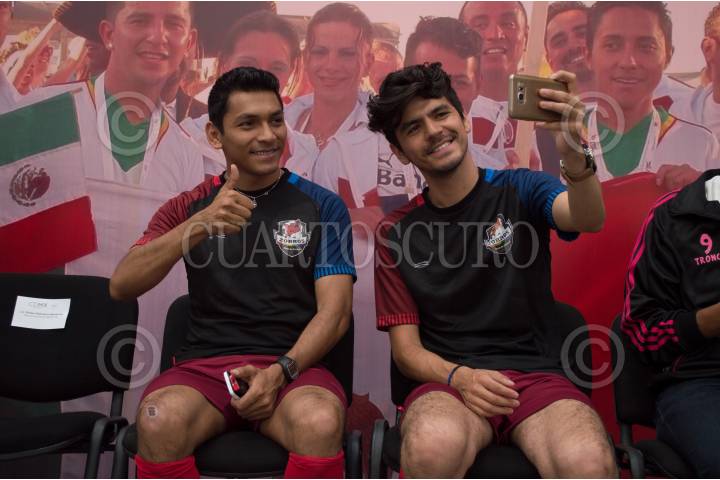CIUDAD DE MÉXICO, 18MAYO2017.- Integrantes del equipo de futbol Zorros durante la ceremonia de abanderamiento a la comunidad lésbico gay, bisexual, travesti, transexual, transgénero e intersexuales (LGBTTTI) que viajará en los próximos días para competir en la 4ta. edición de los World Out Games 2017 en Miami. El acto fue presidido por José Ramón Amieva Gálvez, director de la secretaria de Desarrollo Social de la Ciudad. FOTO: SELENE PACHECO /CUARTOSCURO.COM