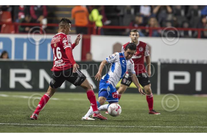 PUEBLA, PUEBLA, 11AGOSTO2017.- Los jugadores Carlos Salom y Michael Orozco durante jugada del partido entre el Club Puebla y los Xolos de Tijuana con marcador final 1-1 correspondiente a la jornada 4 del torneo de Apertura de la Liga MX. FOTO: HILDA RÍOS /CUARTOSCURO.COM