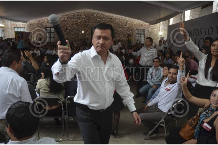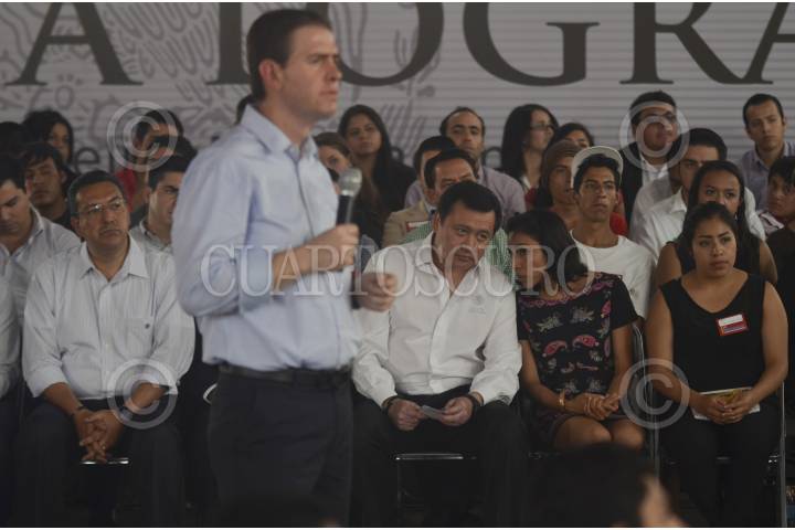 MORELIA, MICHOACÁN, 03MARZO2014.- Miguel Ángel Osorio Chong, secretario de Gobernación, sostuvo el encuentro “Juntos lo Vamos a Lograr”, en el escucho a jóvenes hablar sobre los problemas que aquejan a este sector de la sociedad. FOTO: ALAN ORTEGA /CUARTOSCURO.COM