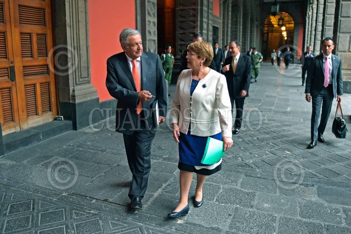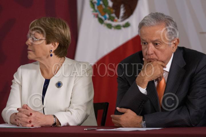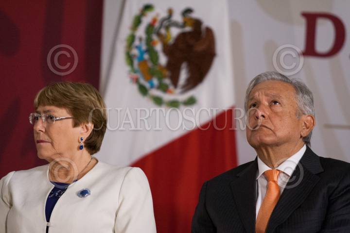 CIUDAD DE MÉXICO, 09ABRIL2019.- Michelle Bachelet, alta comisionada para los Derechos Humanos de las Naciones Unidas, y Andrés Manuel López Obrador, presidente de México, durante la firma de acuerdo para la prevalencia de los Derechos Humanos en la creación y actuar de la Guardia Nacional. FOTO: GALO CAÑAS /CUARTOSCURO.COM