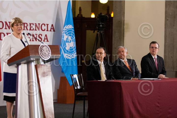 CIUDAD DE MÉXICO, 09ABRIL2019.- Michelle Bachelet, alta comisionada para los Derechos Humanos de las Naciones Unidas, durante la firma de acuerdo para la prevalencia de los Derechos Humanos en la creación y actuar de la Guardia Nacional. FOTO: GALO CAÑAS /CUARTOSCURO.COM