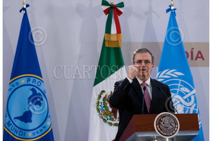 CIUDAD DE MÉXICO, 09ABRIL2019.- Marcelo Ebrard, secretario de Relaciones Exteriores, durante la presentación del Informe de la Comisión de Alto Nivel “Salud Universal en el siglo XXI: 40 años de Alma-Ata”. FOTO: GALO CAÑAS /CUARTOSCURO.COM